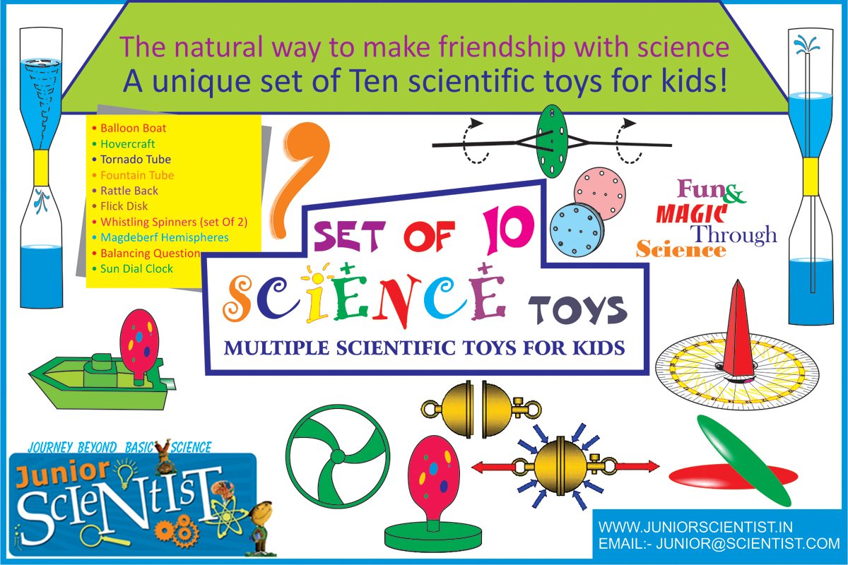 Explore Science with toys. Set of 10 scientific toys.