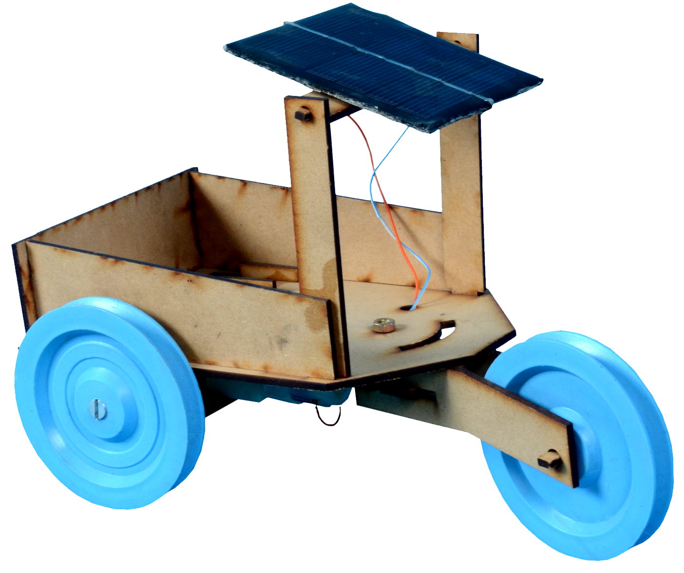 | What is in the Box | Cabinet Base, Cabinet Support (3 Nos), Front Axle Cabinet Connector ( 2 Nos.), Front Axle Support (2 Nos.), Front Wheel Shaft, Gear Motor, Motor Mount (4 Nos.), Nut & Bolt, Product Manual, Rear Axle Support, Shaft Connector (2 Nos.), Solar Mount (3 Nos.), Solar Panel, Wheels (3 Nos.), Wires |